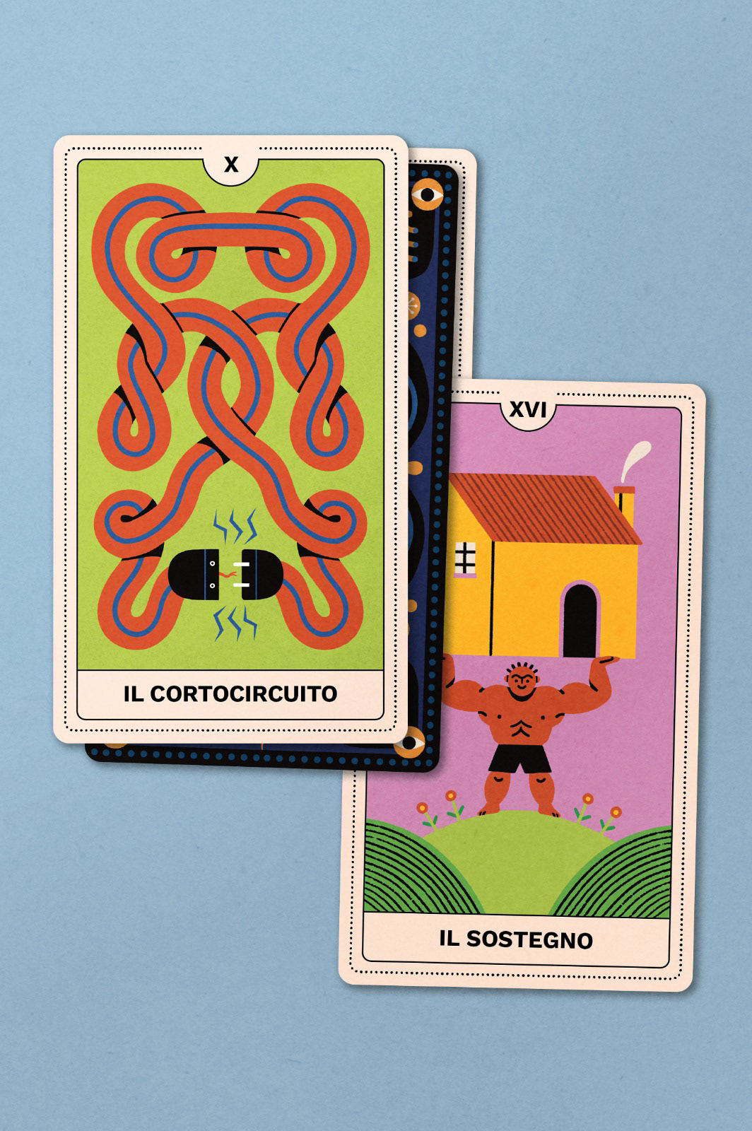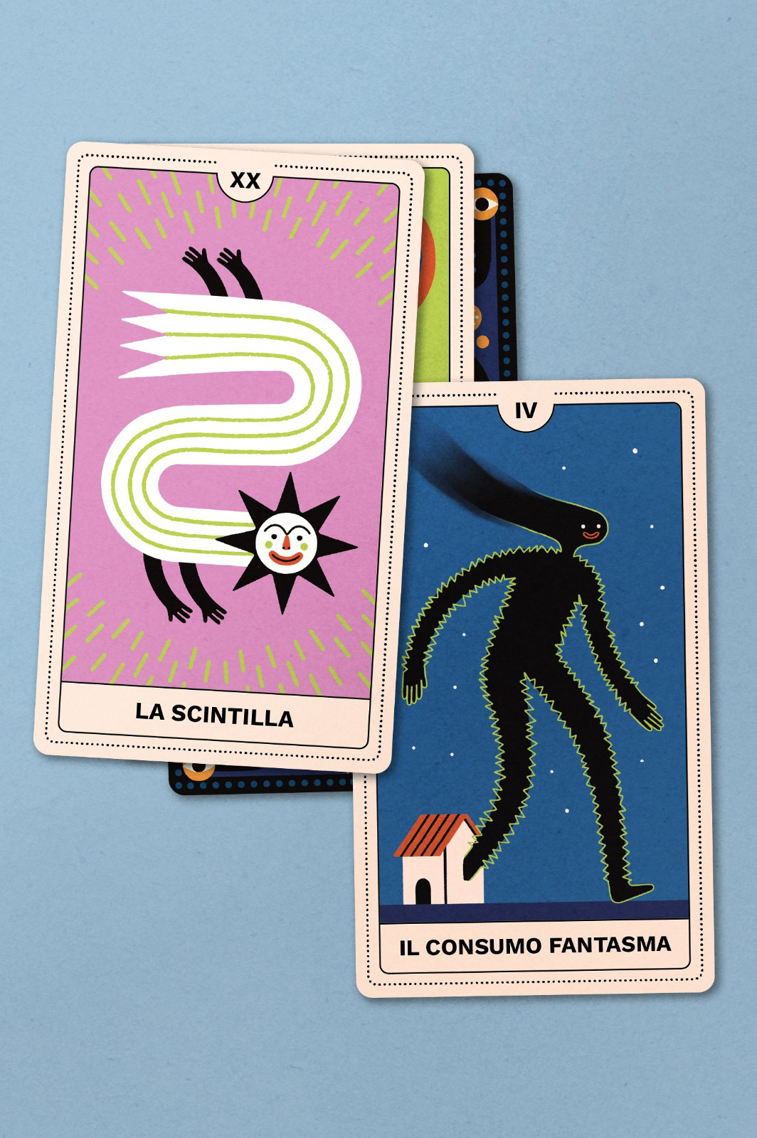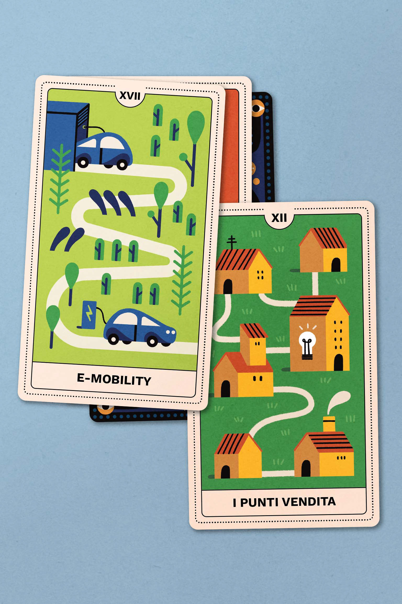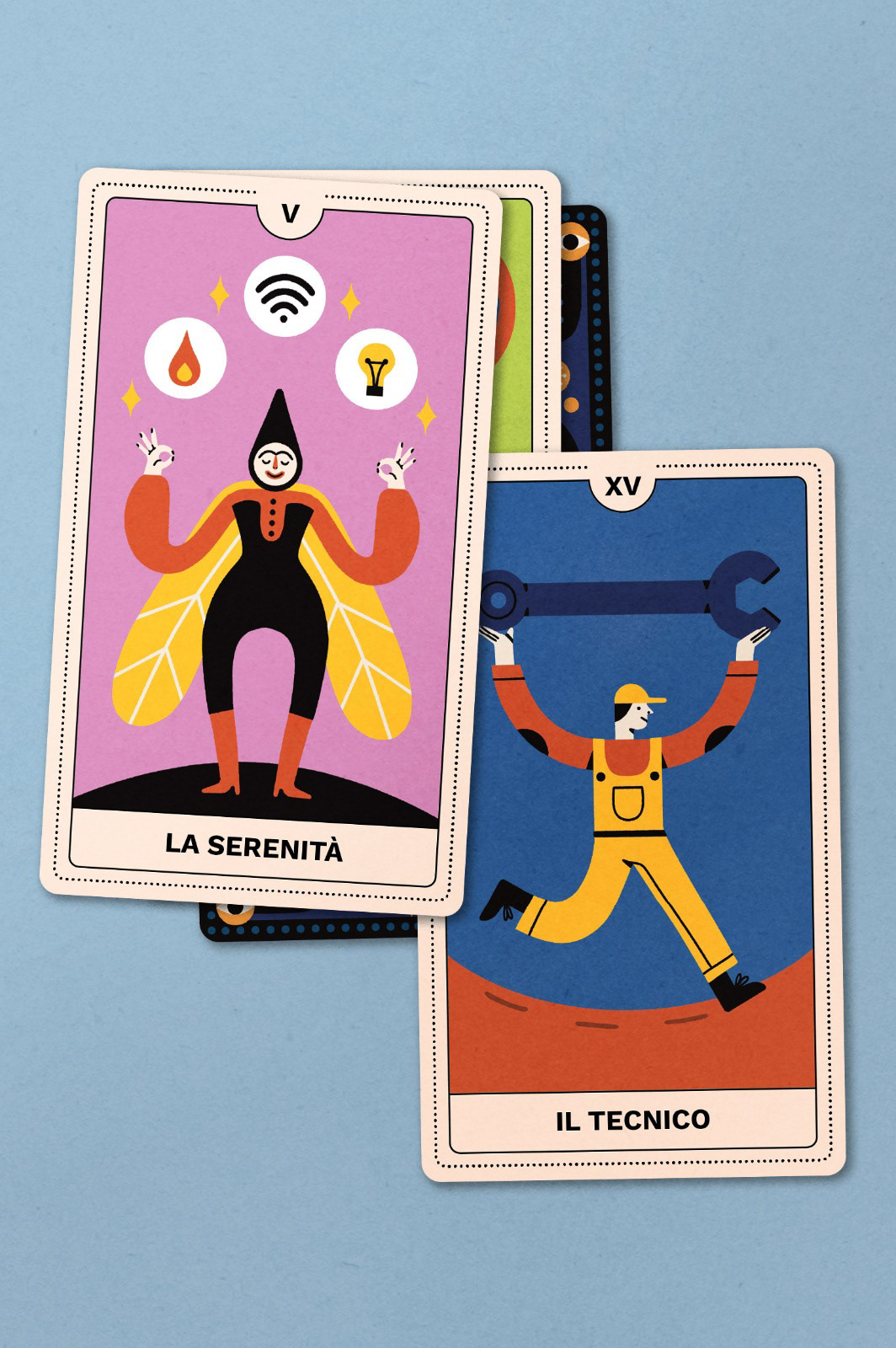 Si tratta di un mazzo di 22 tarocchi e box illustrati ispirato al mondo dell’Energia, utilizzato per una campagna social con protagonista Cloris Brosca, la famosa cartomante degli anni ‘90.