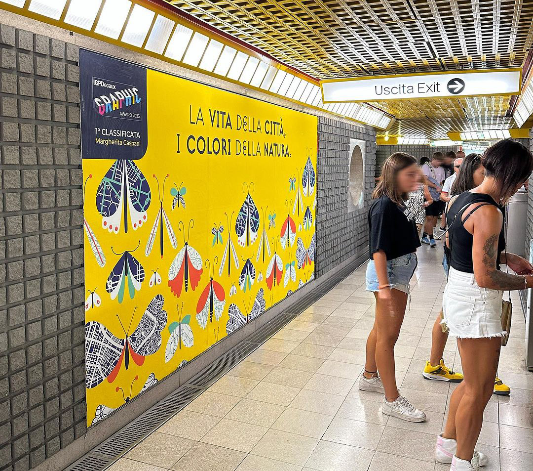 Seeing my illustrations populate the stops I've been visiting daily for years, in what I feel is my city, is insane. To imagine that these butterflies will fly across subways, trams, buses, and shelters throughout Italy is decidedly even more surreal.